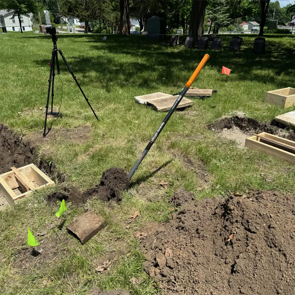 Sometimes, the problem lies beneath the surface, at the very base of the stone. I repair bases or provide new foundations to ensure the headstone will remain secure for years.